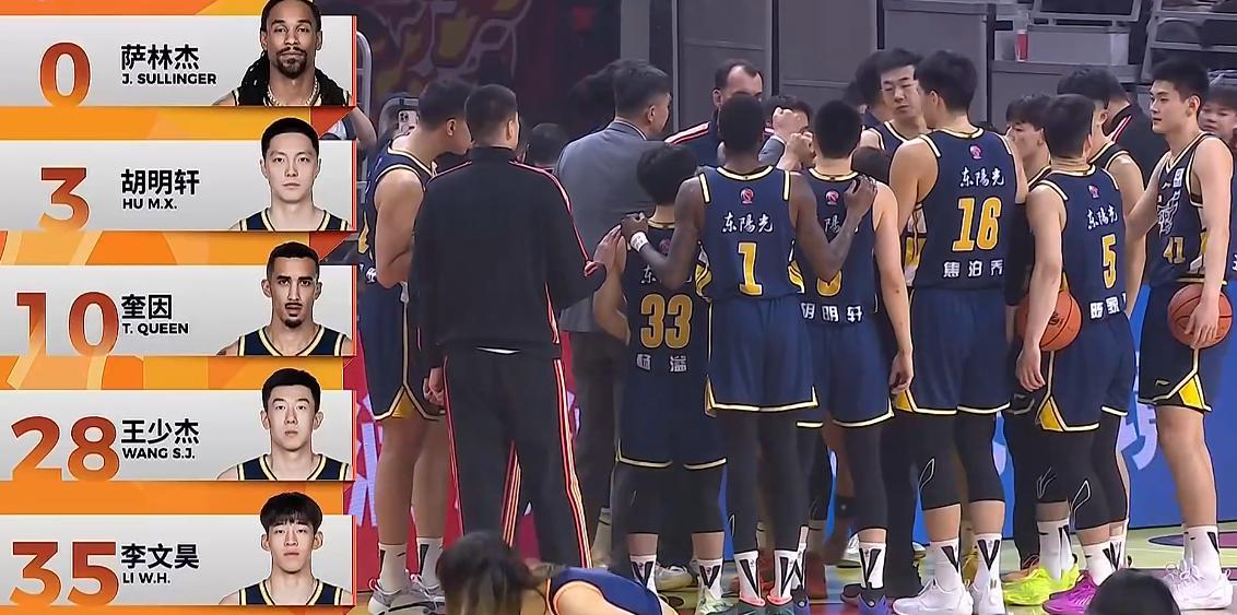 广东队先发:后场胡明轩李文昊,前场奎因萨林杰王少杰。