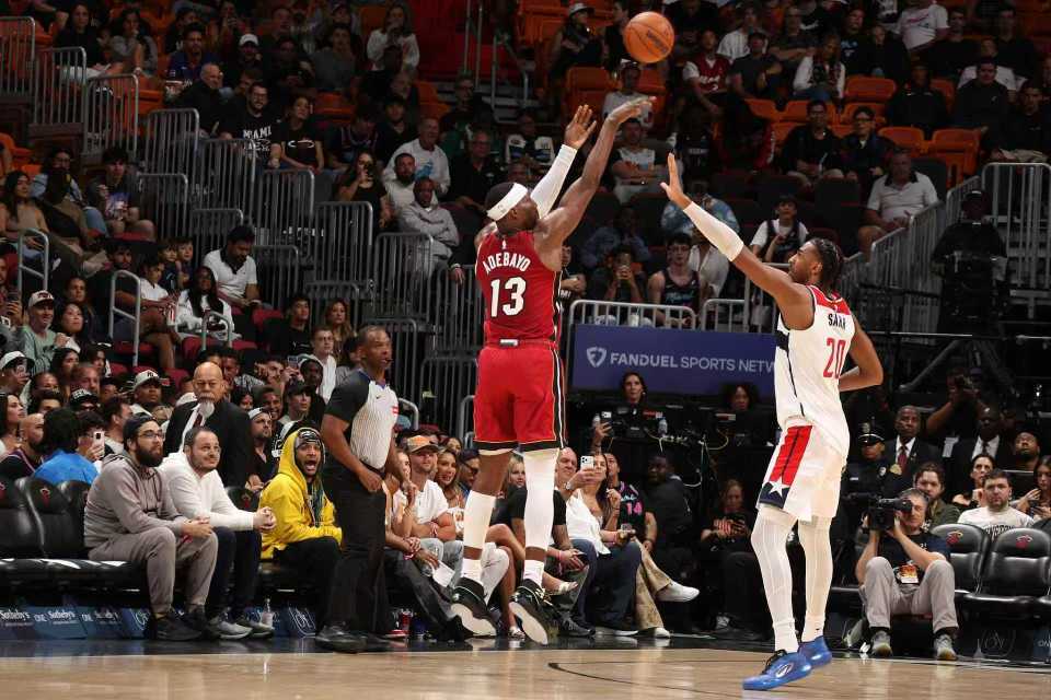 中场休息回来,双方继续展开对攻模式,双方第三节均是单节轰下35+得分对攻。阿德巴约依然是无可阻挡的进攻模式,他第三节11中4,其中外线再中一记三分,外加不断造犯规罚球得分,从而单节再得到19分,引领热火单节37-35净胜2分,前三节比赛结束热火113-97领先奇才。前三节比赛,阿德巴约35中17,其中三分16中6,外加罚球27中22,狂轰62+6数据,引领4人得分上双;奇才3人得分上双,萨尔28分、约翰逊17分与莱利13分。