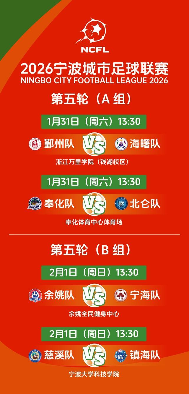 小组赛最后一轮,将排定全部晋级名额。1月31日13点30,A组,鄞州队—海曙队、奉化队—北仑队;2月1日13点30,B组,余姚队—宁海队、慈溪队—镇海队。